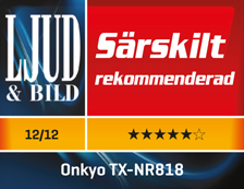 Onkyo TX-NR818 har godt med muskler og leverer et lydbillede fuld af fut og fart. Dialogerne i film lyder stort og barskt, uden at det går ud over artikuleringen, og lydbilledet er stort og omsluttende. Det bliver ekstra barskt med højdehøjttalerne i fr...